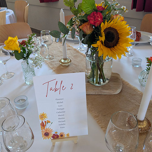 Panneau de bienvenue et plan de table personnalisable