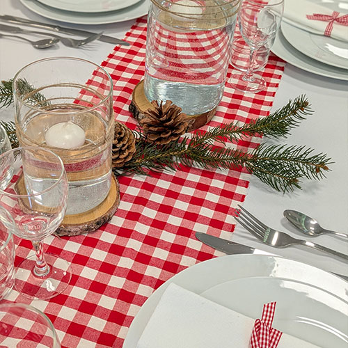 Chemin de table à carreaux blanc/rouge 20 cm x 1,50 cm